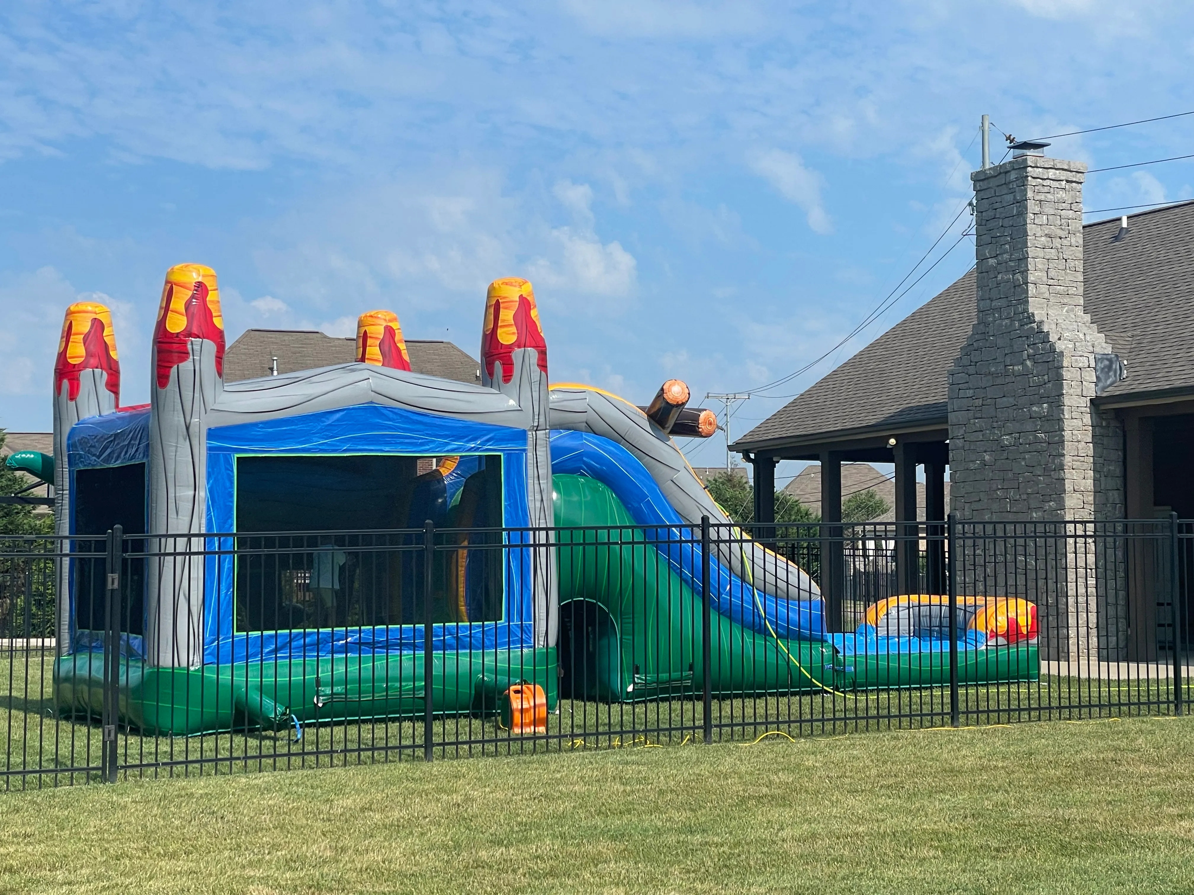- Setup Requirements: Inflatables must be placed on flat, clean surfaces such as grass, concrete, or turf. We do not set up on gravel, sand, rocks, or uneven terrain to avoid safety risks and damage. Ensure the setup area has enough space for the inflatable, blower, and entry access.